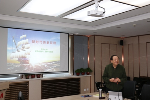 在集体学习中,柯伟院士作为有62年党龄的老党员,结合入党多年的经历及工作心得作了题为《新时代历史征程━党员的信仰、情怀和担当》党课辅导报告。柯伟院士以“习近平新时代中国特色社会主义思想”为线索,从新时代的历史回顾、新时代的现实依据、新时代的标志和内涵四个方面展开,回顾了从新民主主义革命到社会主义建设不同阶段,中国共产党及共产党人的使命和担当。柯伟院士认为,信仰与坚守是新时代的强烈呼唤,“不讲奉献讲索取,不比奉献比享受”必然走向背叛与堕落。党员要增强“四个意识”,这是党员政治站位的行为准则,立场坚定的时代描述,要做政治上的明白人;要坚定“四个自信”,这是信仰的思想基础,要让理想信念的明灯永远在全国各族人民心中闪亮。最后,柯伟院士通过列举身边榜样张沛霖、黄旭华、师昌绪、陈能宽等同志的先进事迹,希望广大党员,尤其是科技工作者,恪守廉洁奉公底线,不断增强使命感和奉献精神。认真学习,提高独立思考和判别能力,培养战胜困难的勇气和能力,在党需要我们的时候,奉献我们的力量和智慧,成为名副其实的共产党员。
