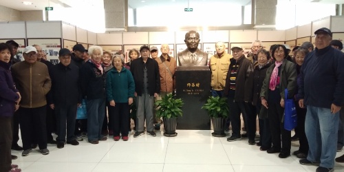 参观结束,大家不约而同站在师先生塑像前合影留念。