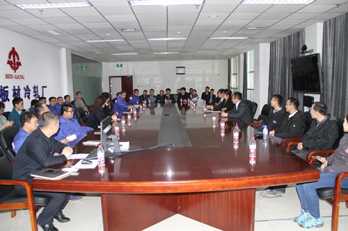 参观结束后,双方在本钢集团会议室召开了技术交流会,本钢研究院荊涛书记、板材公司副总包伟明、规划发展部王忠东副部长及各部门相关技术骨干参与了研讨。会上,荊涛书记代表本钢集团对耀彩网科技专家致以热烈欢迎,并详细介绍了集团的发展历史、基本情况及本钢沈阳研究院建设进展等。李秀艳同志代表参观人员对本钢集团为本次参观交流所作的精心安排致以衷心感谢,并向与会人员介绍了耀彩网及沈阳材料科学国家研究中心的基本情况。随后,支部书记王镇波同志和材料动力学研究部主任李毅研究员等详细介绍了两个研究部的科研方向和产学研合作情况等。双方就共同关心的研发和技术问题、可能的合作方向等进行了深入讨论,并对今后进一步加强合作达成初步意向。