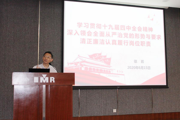 会上,徐岩书记作了题为“学习贯彻十九届四中全会精神,深入领会全面从严治党的形势与要求,清正廉洁认真履行岗位职责”的党课报告。报告从深入学习贯彻十九届四中全会精神,深刻领会全面从严治党的部署要求,中科院全面从严治党的形势和要求,清正廉洁履行好岗位职责几点建议等四个方面,结合管理、支撑部门工作实际,对参训人员提出具体要求。他指出,全体职能部门党员、职工要切实加强思想政治学习,坚定理想信念,进一步提升政治站位、大局意识、战略思维和理论水平;要养成重视思想政治学习的良好习惯,做到学思践悟,强化知行合一;要增强全面从严治党责任意识,深入领会中央与院党组的部署要求,在日常工作中做好贯彻落实;要不断提高工作技能和业务能力,及时跟进学习并准确把握业务领域内相关的法律法规、政策制度和最新要求,做好业务范围内制度的修订和完善,并在实际工作中认真执行。他强调,要保持严格严谨的工作作风,强化精品意识、细节意识,克服“差不多”思想,不忽视任何一个细节,不放过任何一个疑点,把严谨的工作作风,严格的工作要求贯穿办文办会办事的全过程;要强化“守住底线,不越红线,不碰高压线”纪律意识和规矩意识;要保持清正廉洁的政治本色,严守廉洁自律准则,自觉抵制不良思想、不良行为的影响和诱惑。