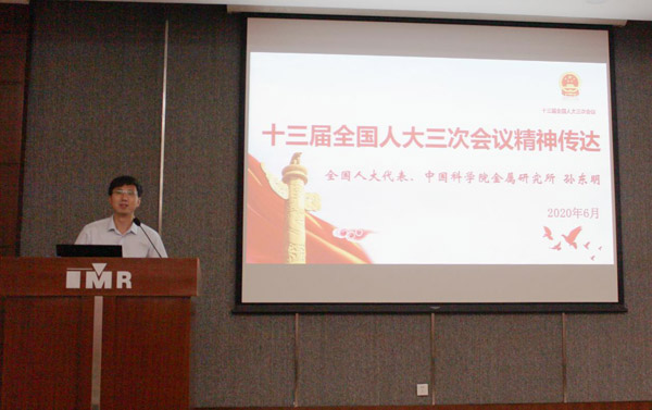 随后,全国人大代表孙东明研究员作了题为“十三届全国人大三次会议精神传达”专题报告。报告重点传达了习近平总书记的重要讲话精神,介绍了本次会议的背景和主要内容,政府工作报告、常委会工作报告、两高工作报告、民法典及全国人大对重大事项审议的情况,并通报了辽宁代表团和个人履职的情况。