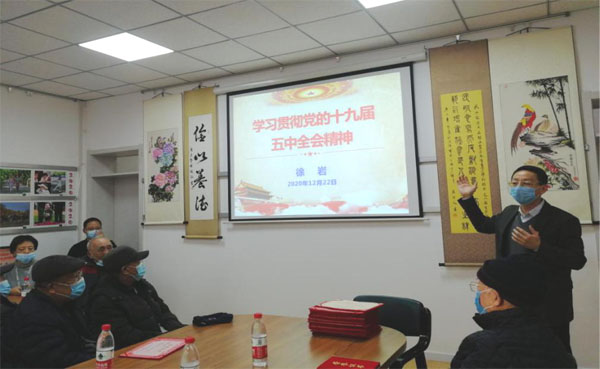 会上,离退休党总支书记刘广新汇报了离退休党员的队伍现状、2020年党总支主要工作、党总支工作体会和差距,以及2021年工作设想。徐岩书记作了题为《学习贯彻党的十九届五中全会精神》的交流报告,并向大家通报了2020年研究所工作进展和取得的重大成果。