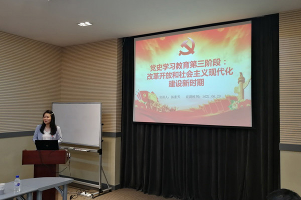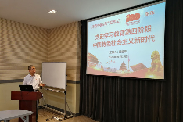 随后,党委委员、副所长孙晓峰作《党史学习教育第四阶段中国特色社会主义新时代》主题交流报告。报告详细回顾了党的十八大以来,以习近平同志为核心的党中央,团结带领全党全国各族人民,举旗定向,谋篇布局,从理论和实践结合上深刻回答了新时代坚持和发展什么样的中国特色社会主义、怎样坚持和发展中国特色社会主义这个重大时代课题,创立习近平新时代中国特色社会主义思想,统筹推进“五位一体”总体布局、协调推进“四个全面”战略布局,坚持完善和发展中国特色社会主义制度,推动党和国家事业取得历史性成就、发生历史性变革,推动中国特色社会主义进入新时代。孙晓峰同志号召与会人员要牢记自己是“国家队”“国家人”,要心系“国家事”,肩扛“国家责”。