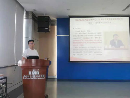 2021年7月19日上午,在师昌绪楼403会议室,特种合金研究部党支部组织召开全体党员大会,集中学习了习近平总书记在庆祝中国共产党成立一百周年大会上的重要讲话精神,习近平总书记在两院院士大会、科协大会以及在福建、广西、青海考察时的重要讲话精神,会议由支部书记马颖澈同志主持。