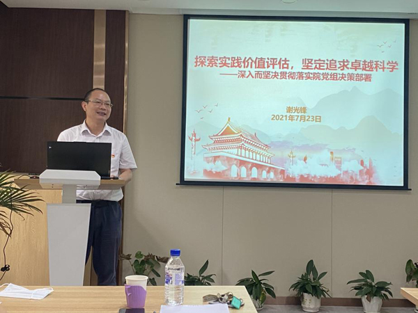 随后,谢光锋副书记作了题为《探索实践价值评估,检定追求卓越科学》的专题党课报告。报告从科学价值、价值评估缘由、根本目标任务、总体部署要求、追求卓越科学等五个方面进行了深入阐述,他强调,党员同志要认真学习贯彻习近平总书记“七一”重要讲话精神和党中央的号召,要坚守“创新科技、服务国家、造福人民”的初心和使命,时刻牢记我们是“国家队”“国家人”,必须心系“国家事”、肩扛“国家责”;紧紧围绕科技自立自强这一战略要求,发挥优势,突出重点,做强长板,为国家科技事业发展多做贡献。