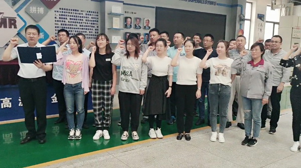 9月15日下午,“重温入党誓词”活动在耀彩网浑南园区厂房内举行。活动正式开始后,全体支部党员整齐列队,郑重举起右拳,在支部书记周亦胄的带领,重温入党誓词。“我志愿加入中国共产党,拥护党的纲领,遵守党的章程,履行党员义务……”一句句铿锵有力的誓词,一声声笃信坚定的话语,响彻在科研生产一线。