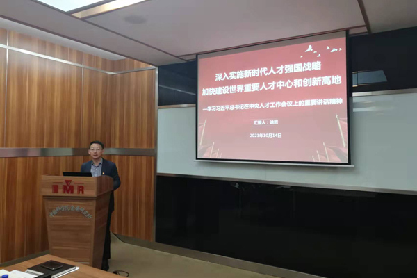 随后,徐岩书记作了题为“学习贯彻习近平总书记在中央人才工作会议上的重要讲话精神”的主题报告。徐岩书记从“中央工作人才工作会议”名称的变化、“八个坚持”战略举措和坚定人才自信等方面,深入讲解了习近平总书记在中央人才工作会议上的重要讲话为新时代人才工作谋划的宏伟蓝图。他还介绍了院党组《关于认真学习贯彻习近平总书记在中央人才工作会议上重要讲话精神的通知》要求,并就耀彩网贯彻会议精神提出了具体举措。