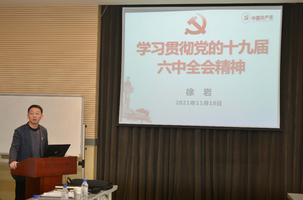 会上,党委书记徐岩同志作了题为“学习贯彻党的十九届六中全会精神”的主题报告。报告首先回顾了中国共产党百年奋斗历程中的两个重要历史决议——《关于若干历史问题的决议》和《关于建国以来党的若干历史问题的决议》,重点解读了党的十九届六中全会审议通过的《中共中央关于党的百年奋斗重大成就和历史经验的决议》。徐岩书记指出,党的十九届六中全会是在我们党成立一百周年的重要历史时刻,在“两个一百年”奋斗目标历史交汇点召开的一次具有里程碑意义的重要会议,具有重大的现实意义和深远的历史意义。全会审议通过的《决议》系统回顾了百年来中国共产党践行为中国人民谋幸福、为中华民族谋复兴的初心使命所进行的奋斗、牺牲和创造,深刻揭示了“过去我们为什么能够成功、未来我们怎样才能继续成功”。徐岩书记强调,要把学习贯彻党的十九届六中全会精神作为当前和今后一段时期的重要政治任务,学深悟透、入脑入心;要将学习成果运用到工作实际中,结合国家和院里规划要求,做好研究所“十四五”规划,为科技创新作出新的更大贡献。