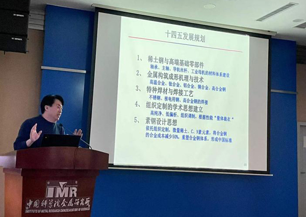 随后,先进钢铁材料研究部李殿中主任作了“不忘初心,在科研攻关中争当排头兵”的科学家精神报告。李主任在报告中分享了他对科学家精神的体会。他通过带领团队攻坚克难、勇于创新,坚定了科技自立自强的决心,解决了我国多项“卡脖子”的关键核心问题。李主任提出:科学研究要不忘初心,服务国家,造福人民,力争做‘顶天立地’的科学研究。