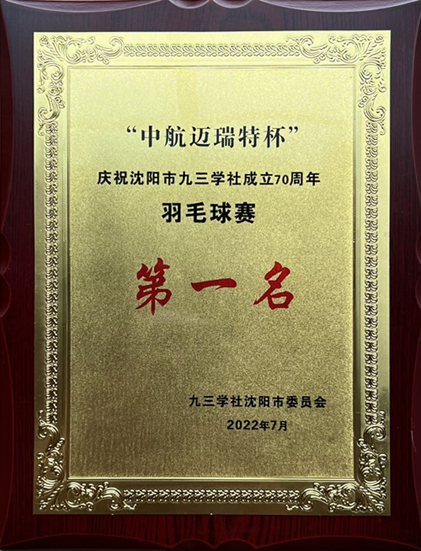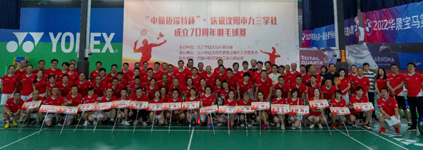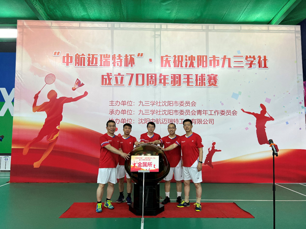 2022年7月24日,由九三学社沈阳市委员会主办的“中航迈瑞特杯”·庆祝沈阳市九三学社成立70周年羽毛球赛在沈阳辉煌羽毛球馆隆重举行。23个九三学社基层组织组成的19支队伍参加了比赛。