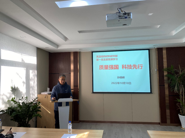 10月18日上午,高温结构材料研究部第一党支部召开支部党员大会,会议邀请了党委委员孙晓峰副所长作党课报告,会议由支部书记周亦胄同志主持。