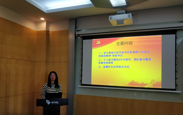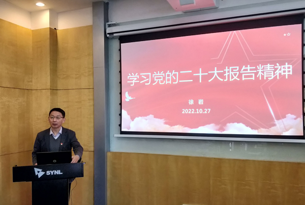 会上,党委书记徐岩同志首先作了“学习党的二十大报告”主题报告。他在报告中对比了党的二十大报告和十九大报告的内容,详细介绍了二十大报告的主要内容,重点介绍了与我们工作密切相关的“实施科教兴国战略,强化现代化建设人才支撑”的内容,并通过“数”读二十大报告和学习二十大报告金句的形式,强化了对报告中的新观点、新论断和新思想的学习。同时,徐岩书记结合自己学习经验,向支部党员分享了学深悟透党的二十大精神的方式方法,指导支部党员更好地学习贯彻好党的二十大精神。近一个小时的报告,使支部党员对党的二十大报告有了更深入的了解,更深刻地领会了新时期教育、科技、人才在党和国家事业发展全局中的重要地位。徐岩书记勉励大家要担负起新时代赋予我们的职责使命,做好本职工作,为我所各项事业高质量发展贡献自己的力量。