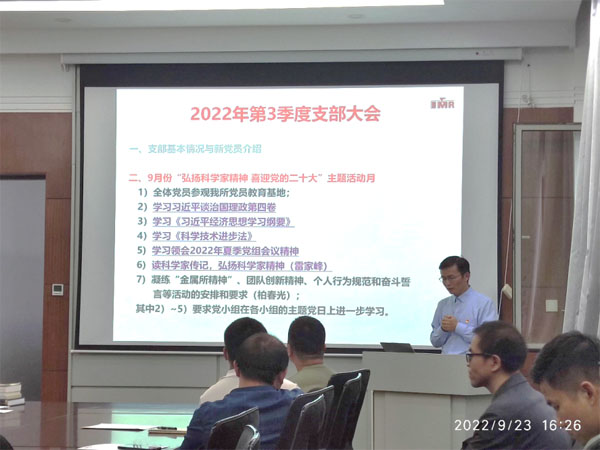 为传承老一辈科学家精神、弘扬新时代科学家精神,按照所党委的统一部署,轻质高强材料研究部党支部于9月23日开展了“弘扬科学家精神喜迎党的二十大”主题活动。
