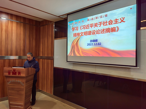 会上,孙晓峰副所长首先作了题为“学习贯彻《习近平关于社会主义精神文明建设论述摘编》精神”的主题报告。报告重点从《论述摘编》的十部分重点内容以及习近平总书记关于精神文明建设的金句等方面介绍了习近平总书记关于社会主义精神文明建设做出的重要指示精神,对更好地理解和把握新时代精神文明建设工作的指导思想、方针原则、使命任务、实践要求进行了深入解读。