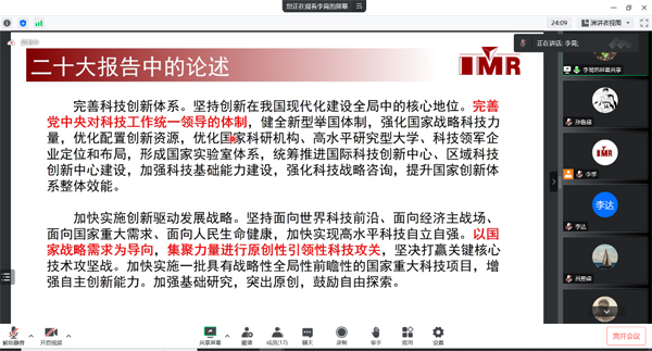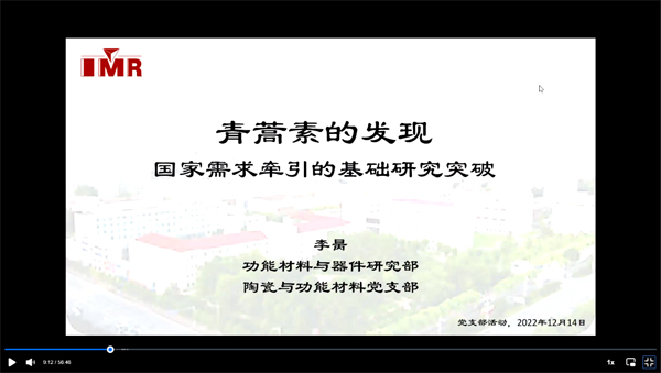 会上,支部书记李昺同志作题为“青蒿素的发现-国家需求牵引的基础研究突破”的党课报告。报告中,李昺同志从党的二十大报告中关于科技创新的相关论述出发,与大家分享了自己关于“完善科技创新体制”和“加快实施创新驱动发展战略”的学习体会,强调了要以国家战略需求为导向,集聚力量进行原创性引领性科技攻关的重要性和必要性。并进一步结合科学院“基础研究十条”,与大家探讨了国家需求与基础研究突破之间的联系。随后,李昺同志以青蒿素的发现为例子,从疟疾的流行病史介绍、“五二三任务”背景、“五二三”攻关的组织模式和青蒿素的研发历程等方面,向大家详细介绍了青蒿素的发现、提纯、结构测定、药理研究和药物生产等一系列的发展历程。报告的最后,李昺同志强调,要不断加强党对科技事业的全面领导,国家任务和基础研究不矛盾,基础研究是手段不是目的,要紧密围绕国家需求来开展基础研究选题,努力奋斗,为党的事业做出更多的贡献。