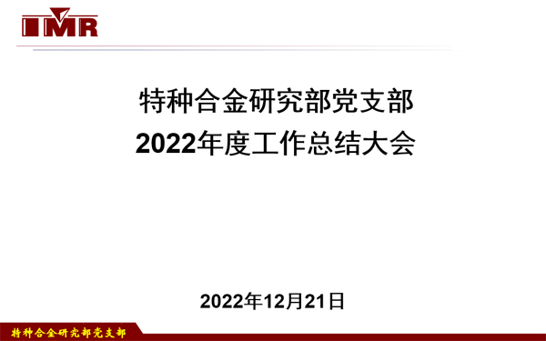 2022年12月21日,特种合金研究部党支部以视频会议的形式组织召开了2022年度支部工作总结大会,会议由支部书记马颖澈同志主持。