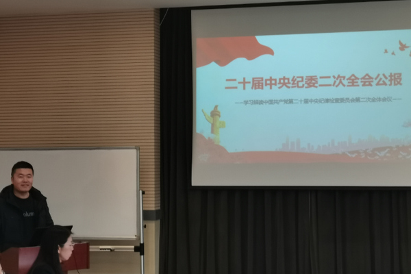 会上,支部纪检委员张孝楠同志首先作了《学习二十届中央纪委二次全会公报》的主题报告。他简明扼要地介绍了二十届中央纪委二次全会基本情况和2023年纪检监察工作部署,带领支部党员重点学习了习近平总书记在会议上的重要讲话精神。接着全体党员观看了发生在我们身边的腐败案件的警示教育片。在交流研讨环节,党委书记、副所长徐岩同志、党委办公室主任赵翔宇同志、综合办公室副主任刘言同志和黄成玉同志分别作了重点发言。