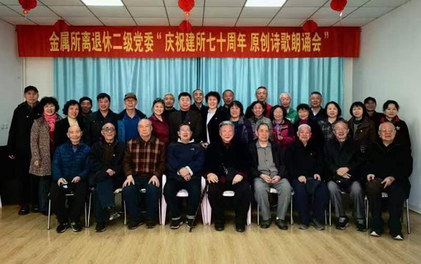 为庆祝建所70周年,4月18日,离退休二级党委在离退休活动室举办了“庆祝建所七十周年原创诗歌朗诵会”,本次活动共收到原创诗歌25首,七个党支部40余人参加朗诵会。