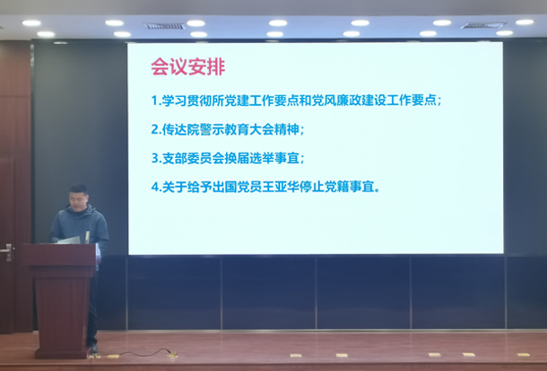 会上,支部委员陶立宇同志首先作了“学习贯彻《耀彩网2023年党的建设工作要点》和《耀彩网2023年党风廉政建设工作要点》”的报告,学习传达了所党委、纪委2023年度重点工作任务。支部将根据所党委、纪委的年度任务台账,结合部门工作实际制定支部年度党建工作计划,高标准高质量完成所党委、纪委年度工作要求。