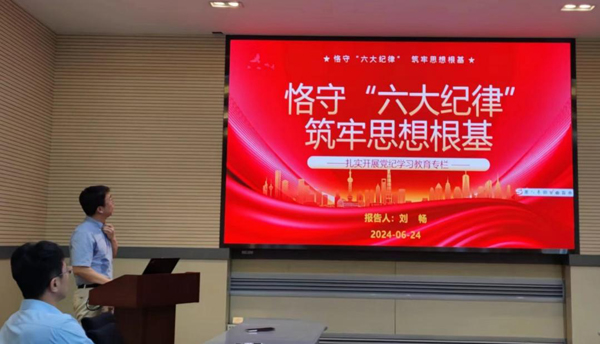 为对照学习新修订的《中国共产党纪律处分条例》,规范党员自身行为,懂法纪、明规矩、知敬畏、存戒惧、守底线,努力做一名忠诚干净担当的合格共产党员;也为了巩固科研诚信建设效果,先进炭材料研究部党支部于6月24日下午在李薰楼249会议室召开支部党员大会。由支部书记刘畅同志作“恪守‘六大纪律’,筑牢思想根基”的党课报告,支部委员领学了基金委《科研诚信规范手册》,并开展“讲纪律,促攻坚”大讨论,会议还讨论了接收胡广剑同志为预备党员事宜。