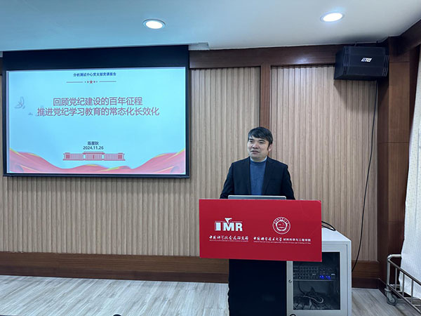 在中国共产党辉煌的百年历史进程中,党纪建设始终是推动党的事业发展的重要保障。为深入贯彻落实党中央和院党组关于党纪学习教育部署要求,推进党纪学习教育常态化长效化,11月26日,分析测试中心党支部组织了“回顾党纪建设的百年征程推进党纪学习教育的常态化长效化”专题学习。所党委书记、副所长陈星秋受邀参加会议并作主题报告,分析测试中心党支部书记张重远主持学习活动。