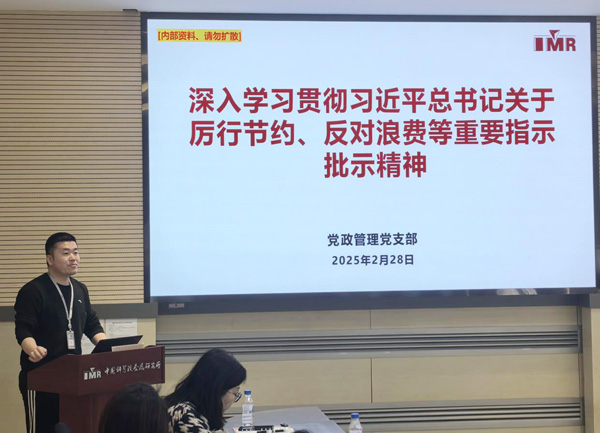 支部委员张孝楠作了《深入学习贯彻习近平总书记关于厉行节约、反对浪费等重要指示批示精神》的党课报告。他带领大家学习了近年来习近平总书记关于厉行节约、反对浪费、绿色发展等重要讲话和指示批示精神,重温了《中国共产党纪律处分条例》对铺张浪费造成不良影响行为的处分规定,并对我所相关落实举措进行了宣贯。他号召全体党员和职工积极响应国家过“紧日子”的要求,在享受现代文明的同时保持忧患意识,理性消费,注重精神追求。