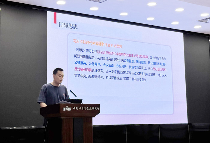 2025年6月20日下午,先进钢铁与设计计算党支部在文化路园区学术报告厅召开党员大会,会议学习了《党政机关厉行节约反对浪费条例》及违反中央八项规定精神典型案例、学习贯彻习近平新时代中国特色社会主义思想专题培训党员联学班集中研讨等内容。