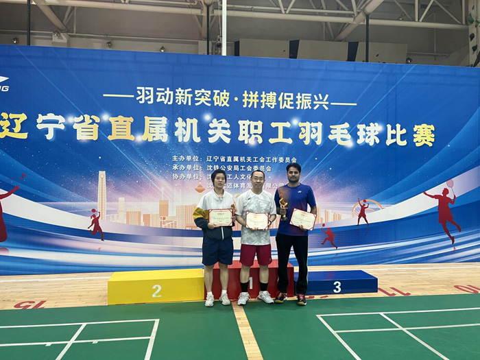 近日,2025年辽宁省直属机关职工羽毛球比赛落下帷幕,本次比赛共有全省 56 家厅局级单位的 376 名选手参赛,我所派出10名运动员参加了全部5个单项的角逐,经过激烈较量,全部参赛队员均从小组循环赛中脱颖而出进入淘汰赛。在男子单打方面,阿里获得第三名、唐明强获得第七名;在女子单打方面,韩帅获得第三名。最终,我所获得团体第六名。