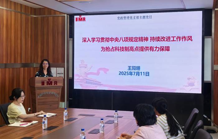 接着,纪委副书记、党群与监审部主任王殿珊同志作了题为“深入学习贯彻中央八项规定精神持续改进工作作风 为抢占科技制高点提供有力保障”的主题报告,深入学习中央八项规定精神、习近平总书记关于作风建设的重要论述,并结合党政管理工作实际分享了在日常工作中持续改进工作作风、为科技创新工作做好服务保障的思考,引导支部党员贯彻落实“过紧日子”要求,全力做好岗位工作,牢固树立当标杆、作表率意识,时刻走在“第一方阵”。