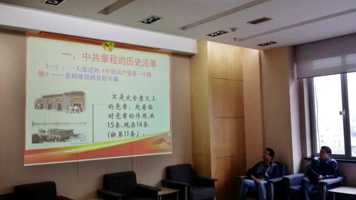 材料表面工程研究部党支部于4月29日在师昌绪楼410召开了支部大会。会议由支部书记主持,会议主要议程包括:(1)传达中科院、沈阳分院以及金属研究所党委关于开展“两学一做” 专题教育活动的通知;(2)通报所党委征集三件实事的落实情况;(3)党课学习,进行“两学一做”专题活动之一“学党章,坚定理想信念”的学习。
