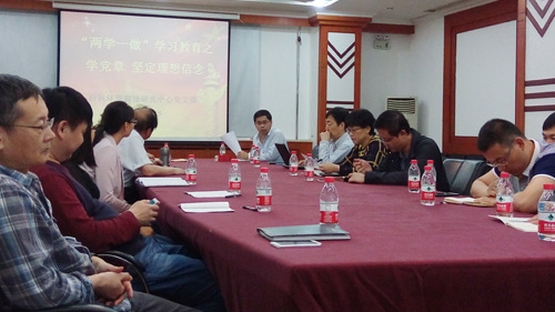 之后,参会党员展开了热烈的讨论,参会党员在会上分享了自己学党章的心得体会。柯伟院士作为一名有60年党龄的老党员,结合自身的经历,谈了对“两学一做”活动的认识和感受。他说:“无论是普通党员,还是党员干部都面临着一种“信仰危机”和“理想信念”的考验,当理想信念不坚定时,就会受各种诱惑的侵蚀;风气很重要,风气不好,好人也会变坏;风气好了,坏人也会变好。共产党员应该愿意为人民群众谋福利,不愿看到社会上的不平等”。韩恩厚院长鼓励大家认真学习党章,对照党章找自身的差距,做一名合格的共产党员。他说:“作为科研工作者,应该努力构建良好的科研环境和文化环境,应解决好日常遇到的科研问题,促进科研工作的有序开展,在工作中起到模范带头作用”。