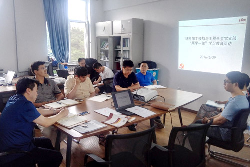 6月29日下午,材料加工模拟与工程材料党支部在科技楼303会议室组织支部全体党员开展“两学一做”学习教育专题二“学党规,严守政治纪律”集中学习,会议由支部书记王培主持。