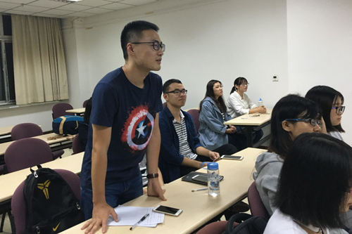 9月13日,15硕二班党支部在郭可信楼202教室围绕“学讲话,增强四个意识”主题进行学习讨论。