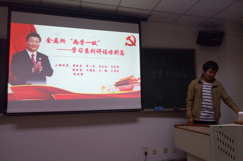 14硕一班党支部于2016年9月28日召开党支部会议,进行了“两学一做”第三次学习——“学习习近平总书记系列讲话”学习活动,本次党课由任德春同志主讲。他和支部第三小组的同学选取《习近平总书记系列重要讲话读本(2016年版) 》和《制度的笼子》两本参考读物,经过认真学习,梳理了十个方面的内容,向党支部做学习汇报。