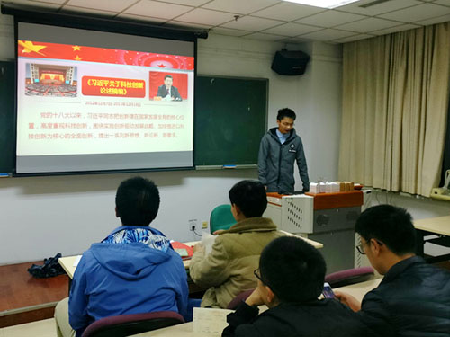 报告的第三部分是开放性的讨论,与会的各位党员结合自己的亲身体会谈了各自对科技创新的认识,由于支部党员均是从事科研工作的研究生,讨论部分引发了大家的踊跃发言。有谈到目前科技创新出现的问题的,譬如产学研战略落实不到位,有些基础研究工作与实际应用严重脱钩等等现象;也有谈到目前我国在科技创新方面取得的成绩的,譬如航空航天事业的发展,高铁核电等高科技产业走出国门等;也有谈到目前国家层面对创新人才的大力引进和奖励措施等。通过热烈讨论,大家对本期的学习专题“科技创新”以及对《习近平关于科技创新论述摘编》有了更深刻的认识。