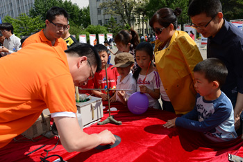 “家属日”活动包括室外材料学相关科普展示、科学常识有奖问答和实验室参观等环节。