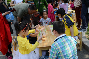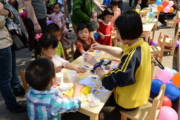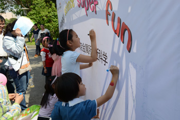 家属日活动还安排了适合学龄前儿童的体验式游戏、DIY手工制作、手绘涂鸦等活动。儿童互动体验区成为了欢乐的海洋。在这里,有的小朋友在做鸡蛋在盐水中浮起来的游戏,有的小朋友在试做肥皂水来吹泡泡,还有的小朋友拿起画笔描绘心中耀彩网美好的未来。