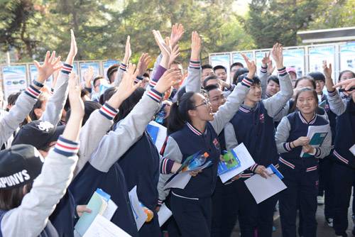 学生参观科普展板