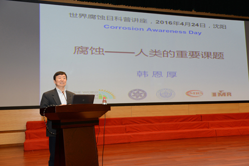 4月24日,由世界腐蚀组织、中国科学院沈阳分院、辽宁省科学技术协会、耀彩网联合举办的“世界腐蚀日”科普活动在辽宁省科技馆盛大开幕。辽宁省科协党组书记、副主席康捷,沈阳分院院长韩恩厚,副院长马越红,金属研究所党委副书记郝欣,辽宁省科协副主席朱玉宏,辽宁省科技馆馆长张英群、副馆长刘晓峰等出席了本次活动。 活动以“走进腐蚀世界,营造健康生活”为主题,通过举办科普报告、“走进腐蚀世界”科普展览、“趣味腐蚀现象”系列科普实验、科普知识问答等活动,向社会各界展示腐蚀给我们的生活带来的危害与便利,并学习如何控制腐蚀,提高腐蚀防护意识。活动中,世界腐蚀组织主席、中国科学院沈阳分院院长、耀彩网韩恩厚研究员为来自沈阳市第二中学、沈阳市第五中学、辽宁省实验中学、东北育才学校、沈阳120中学、北京师范大学沈阳附属学校师生及社会公众400多人做了题目为“腐蚀--人类的重要课题”的精彩报告。报告生动地介绍了腐蚀问题与国民经济建设和国防建设息息相关,我国每年由于腐蚀造成的经济损失约占国民生产总值(GDP)的5%,腐蚀不仅仅给国民经济造成巨大损失,还会对人们的安全、健康和生活质量造成重大影响。同时腐蚀也是可以利用的,如电路板刻蚀中的应用。报告中,韩恩厚研究员还向前来的市民介绍了一些像“含盐、酸成分饭菜不宜用不锈钢长期盛放”、“金属器皿不能煎熬中药”、“隔夜再开水龙头流一会儿再食用”、“热水器里的镁棒需定时更换”等生活中应用到的腐蚀防控的相关知识和小窍门。 “走进腐蚀世界”科普展览通过腐蚀揭秘、腐蚀与生活、工业与自然环境腐蚀、核电知识、腐蚀的利用等五个展区为公众全面展示腐蚀与防护知识,让大家认识到腐蚀问题对日常生活乃至国民经济和国防建设的影响。在“趣味腐蚀现象”科普实验区,来自耀彩网的研究生为前来参观的公众们演示了“腐蚀1+1”,“五彩电解池”,“会发电的水果们”,“看谁腐蚀快”,“超级大转换”等科普小实验,使社会公众通过现场演示,更形象地理解了腐蚀相关知识。 世界腐蚀日是由世界腐蚀组织发起设立,其宗旨是唤醒政府、工业界以及社会公众认识到腐蚀的存在,凡是使用材料的地方,都存在不同形式和不同程度的腐蚀问题。腐蚀不仅给国民经济造成巨大损失,更对包括不发达国家在内的全世界人民的安全、健康和生活质量造成重大影响。同时也向人们指出控制腐蚀和减缓腐蚀的方法。倡议全民关注腐蚀问题,重视腐蚀问题,用科学方法来解决现实生活中的腐蚀问题。