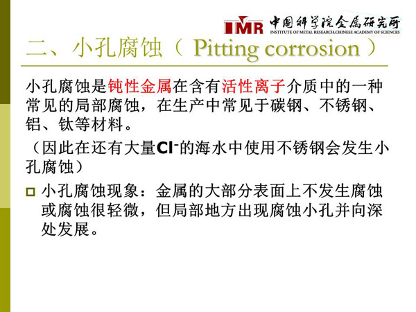 金属的致命伤痕--浅谈小孔腐蚀