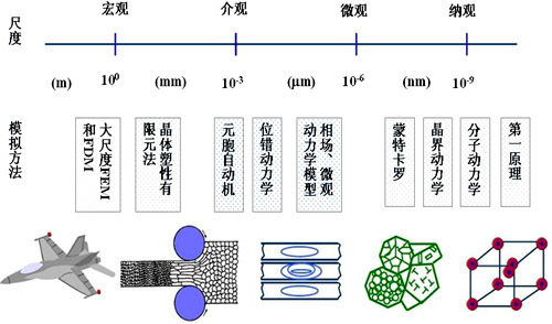 材料作为21世纪的支柱产业之一,越来越显示其重要地位。而对于材料加工,大家并不陌生。从小我们就在电视上看到钢铁厂的各种大生产的过程,冶炼、铸造、锻造、焊接……这些工艺,组成了传统的材料加工工艺。随着现代计算机技术的发展,这些传统的工艺过程能够通过计算机这一先进工具集进行模拟,甚至材料的细微结构如显微组织、原子结构等也能通过计算机这一强大的工具来实现模拟。人类逐渐摆脱了以往基本由经验来设计材料的弊端,开始进入现代通过理论以及计算机这一“可靠的助手”来进行材料设计的新纪元。在不少发达国家的一些钢铁厂,从钢的冶炼,到铸造、压力加工、焊接等一系列加工过程都能实现由计算机进行精确的控制和预测。越来越多的实验都可以在计算机上进行模拟和预测,这样可以节省大量的人力物力,减少环境污染,大大提高效率,真正实现“节能减排”……那么,现在就让我们一起进入神奇的材料加工计算模拟的世界吧! 一、为什么进行计算模拟 模拟的主要目的是将理论与实验工作直接结合起来。首先是建立模型,这个模型要有一个可靠的理论基础,考虑世界的真实性。基于理论的模型才能够预测实验行为,也才能够使实验者根据现代理论解释实验结果。反过来,模拟进一步完善理论和实验研究。也就是说模拟离不开理论和实验,它们相互影响、相互促进。例如,我们可以通过模拟计算出一个传统的加工工艺为什么会出现问题,然后结合理论知识改进工艺方案,最后通过实际生产来验证改进的模拟结果,进一步也验证了所用模型、理论的合理性。 计算模拟架起了从微观到宏观,从基础研究到工程应用的桥梁。小到原子分子,大到飞机航母等尺度的材料行为都能通过不同的模拟方法进行计算模拟。甚至随着材料科学和计算机的发展,我们能实现多尺度的耦合模拟,毋庸置疑,这大大扩宽了人类认识的眼界。 典型模拟方法及所对应的模拟尺度