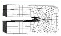 二、有限元方法 有限元法是把要分析的连续体假想地分割成有限个单元所组成的组合体,也就是划分网格。这些单元仅在顶角处相互连接,这些连接点称为结点。在有限元法中,常以结点位移作为基本未知量。并对每个单元根据分块近似,假设一个简单的函数近似地表示单元内位移的分布规律,再利用力学理论中的变分原理或其他方法,建立结点中力与位移之间的特性关系,得到一组代数方程,用计算机求解从而得到所有结点的性质。有限元方法原则上可以求解任何复杂的偏微分方程和任何复杂的求解区域问题。