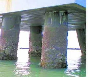 钢管桩腐蚀 混凝土护栏腐蚀 海洋桥梁上使用的钢结构有钢管桩、钢箱梁和钢制拉索等主要承重结构,以及钢围堰、承台底板以及螺栓紧固件、焊接结构等附加物。 其中,钢箱梁、钢制拉索所处的腐蚀环境主要是海洋大气区,腐蚀因素主要是汽车尾气和海水蒸汽,在这一环境中钢箱梁和钢制拉索的腐蚀形式以均匀腐蚀和点蚀为主。由于海洋大气环境非常潮湿、钢结构表面的电解质溶液充足,当异种金属结构相连时钢结构还较容易发生电偶腐蚀。 由于钢箱梁和钢制拉索处于大气环境中,防护措施一般是涂覆防护涂层,不能采用电化学防护。钢管桩需要涂覆防腐涂层,但海水以及紫外线等会严重影响涂层的耐久性,必须配合电化学保护、外包其他防护材料等方法才能获得良好的防护效果。 海洋环境下钢筋混凝土的结构腐蚀主要体现在混凝土结构性能退化和钢筋腐蚀两方面。混凝土本身腐蚀破坏机理包括混凝土碳化以及混凝土冻融循环等破坏等。由于混凝土本身性能退化以及氯离子的侵蚀,破坏了钢筋表面的保护性环境使钢筋所处环境满足腐蚀发生的条件,从而导致钢筋发生腐蚀。 因此,钢筋混凝土的防腐蚀原理主要是通过物理或化学手段,提高混凝土的防护性能,具体措施主要有使用高质量混凝土、适当提高混凝土保护层厚度、在混凝土或钢筋表面涂覆防腐涂层、向混凝土中添加缓蚀剂以及采用电化学保护等。 桥梁的腐蚀防护问题是安全和经济的问题,在耐久性要求大大提高的情况下,提倡采用全寿命经济方法,转变思路,综合考虑而非仅考虑初期投资成本,为桥梁能更好的服役做铺垫。对目前蓬勃兴起的桥梁结构寿命预测技术,应在桥梁的设计中予以大力支持。而对海洋桥梁的腐蚀监测是维护在其服役过程安全运行的重要保障手段,是对桥梁按时进行检测和维护的前提,必须重视。海洋桥梁的腐蚀防护问题,需要设计者、建设者和管理者携手共同解决,任何一个链条脱节都无法保证桥梁的长期安全。