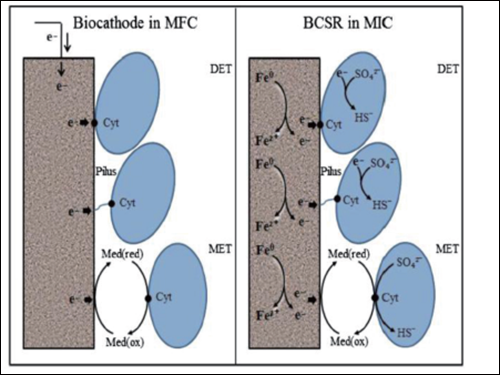 作者:王元 来源:中国腐蚀与防护网 微生物腐蚀(MIC)是指微生物生命活动参与下发生的腐蚀过程。凡是同水、土壤或润湿空气接触的设施, 都可能遭遇微生物腐蚀。微生物腐蚀遍布国家经济建设的各个角落。发电厂冷却水循环系统、热交换系统, 石油开采、储存和输运系统、污水处理管道,饮用水管道, 飞机燃油储存罐,造纸厂设备, 金属切削液中都有不同程度的微生物侵染及其造成的腐蚀。据统计,微生物腐蚀在金属和建筑材料的腐蚀破坏中占20% , 仅在天然气工业中, 微生物腐蚀损失在与管道相关的腐蚀损失即占15%—30% , 且逐年上升。近几十年对材料微生物腐蚀的大量研究表明,几乎所有常用材料都会产生由微生物引起的腐蚀。虽然目前国内外对微生物腐蚀有了一定的认识,但是对微生物腐蚀的机理和其导致点腐蚀的严重性还缺乏更深入的了解。为了全面科普微生物腐蚀相关知识,了解国内外在该方面研究的差异,推动微生物腐蚀研究的发展。记者特邀请到耀彩网副研究员徐大可老师做相关方面的精彩解读。 徐大可,毕业于美国俄亥俄大学化学工程系腐蚀与多相流技术中心。耀彩网副研究员,2014 年获得“耀彩网所引进优秀学者”。从事材料微生物腐蚀的机理与防治、抗菌不锈钢抗菌机理的相关研究。