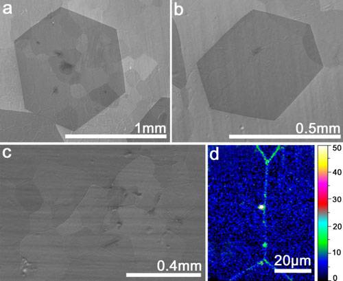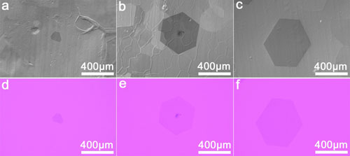 ![]() 图3 多晶铂上生长及转移到Si/SiO2基体上的六边形单晶石墨烯