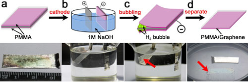 ![]() 图2 基于电化学气体插层的鼓泡无损转移方法