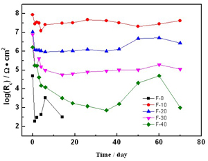在青岛飞溅区投放一年后的试样 对于船舶而言,压载舱的主要作用是灌入海水或泵出海水以消除或恢复船体的浮力、平衡船体以及调节吃水线。由于常年经受海水的浸润和干湿交替的考验,压载舱是船体上腐蚀最严重的部位,也是船舶的最大安全隐患。据统计,我国仅上世纪90年代就因为压载舱腐蚀导致100多条船只报废,共计100多万吨位。压载舱表面是由防腐蚀涂料来进行保护的,防腐蚀涂料的性能决定了压载舱的使用寿命。 针对压载舱等严酷海水腐蚀环境的防护问题,课题组获得了以下研究成果:(1)研究了超短玻璃纤维对环氧涂层的力学和耐腐蚀性能影响,结果表明在涂层中添加超短玻璃纤维能够提高涂层的硬度和附着力。此外,超短玻璃纤维也能有效降低涂层体系的热膨胀系数并且提高涂层的玻璃化转变温度。超短玻璃纤维的关键作用是降低涂层的内应力,防止厚涂层在交变环境下出现开裂和脱落现象。环氧涂层中添加超短玻璃纤维对涂层耐腐蚀性方面的主要贡献在于其能阻挡腐蚀介质在涂层中的渗透过程,具有一定的屏蔽作用。根据这些结论,课题组研制出一种含有超短玻璃纤维的新型环氧富锌涂料,该涂料具有良好的附着力、冲击强度和耐腐蚀性能。(2)研究了添加环保型防锈颜料Ferrinov-100铁酸盐和ZP10磷酸锌的防锈效果。结果表明,涂层中添加这两种防锈颜料均能够起到防锈效果,不过两者在涂层中的最佳含量有所差异,Ferrinov-100铁酸盐的体积浓度在涂层中不能超过10%,并且在涂层中具有自修复功能。而ZP10磷酸锌的体积浓度则必须达到30%以上才具有良好的耐腐蚀性。