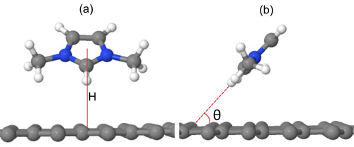 图3. 离子液体阳离子在石墨层表面的优化物理吸附结构