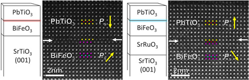 图1:极化头对头以及尾对尾异质界面的原子尺度HAADF-STEM像。