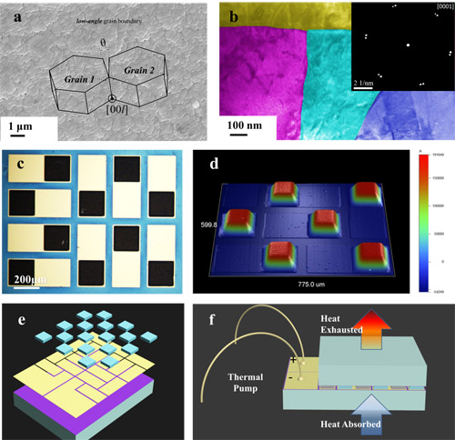 图 热电薄膜微型制冷器光学照片和轮廓仪分析(a)-(c),三维结构示意图(d) 人类离不开能源,但也需要优良的环境,如何解决两者之间的矛盾?可再生能源是关键!随着热电材料的不断进步,除了常见的水能、风能、太阳能等清洁能源,生活中常见的热能也是我们取之不尽用之不竭的选择!